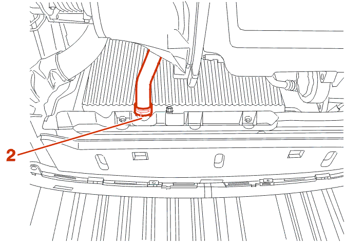 Débrancher la durit inférieure (2) du radiateur (utiliser l'outil [2]) .