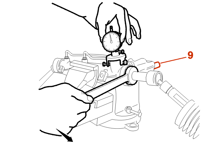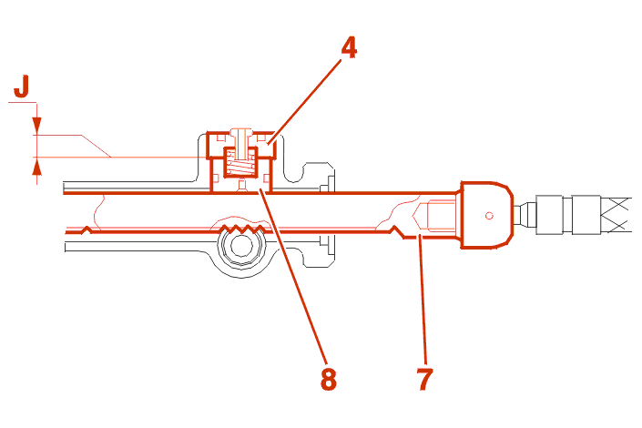 Diese Maßnahme wiederholen, bis ein Spiel (J) zwischen 0.01 und 0.1 mm erreicht ist .