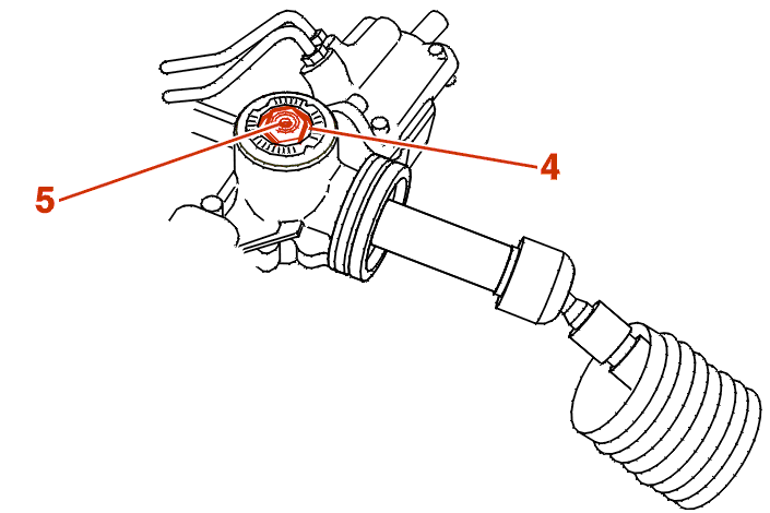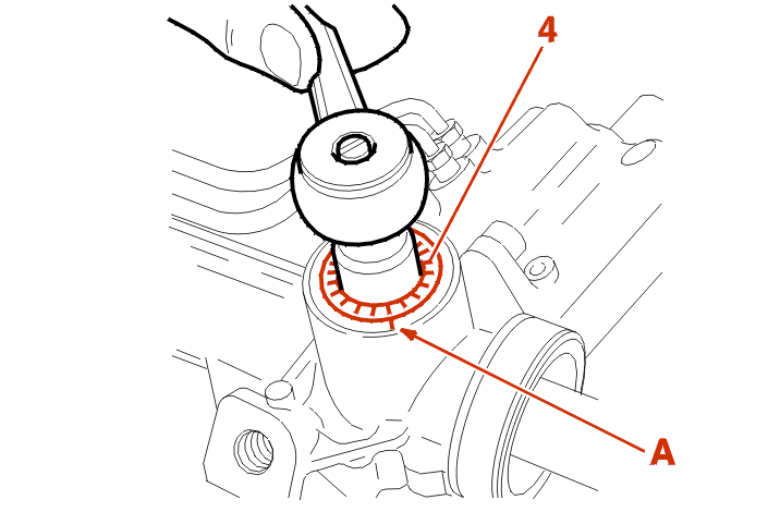 Am Lenkgetriebe eine Markierung (A) gegenüber einem Skalenstrich der Schraube (4) anbringen .