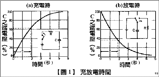 圖1(a)所示之電路,當電源開關ON之後,電容器開始充電,待充電完畢後,電容器兩端之電壓將與電源電壓相等。當電容器兩端之電壓達到電源電壓的63%時,所需之時T[秒]為