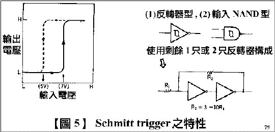 在此所使用之Gate IC並不限使用何種品種,但以使用Schmitt trigger IC最佳。圖5為此種IC之特性。