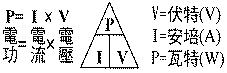 5. 電阻也有瓦特數的分別,如同燈泡一樣,有55W及100W之分,電阻 的瓦特數由1/16W∼100W都有,其公式如下: