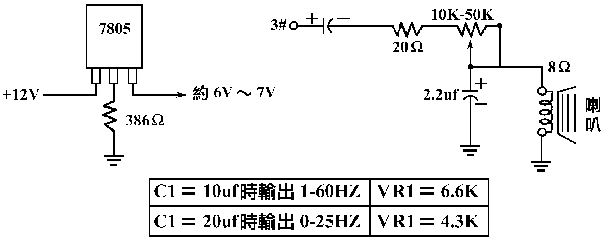 ◎C1必須在0.1uf以上,電容量越大,方波輸出頻率越低。