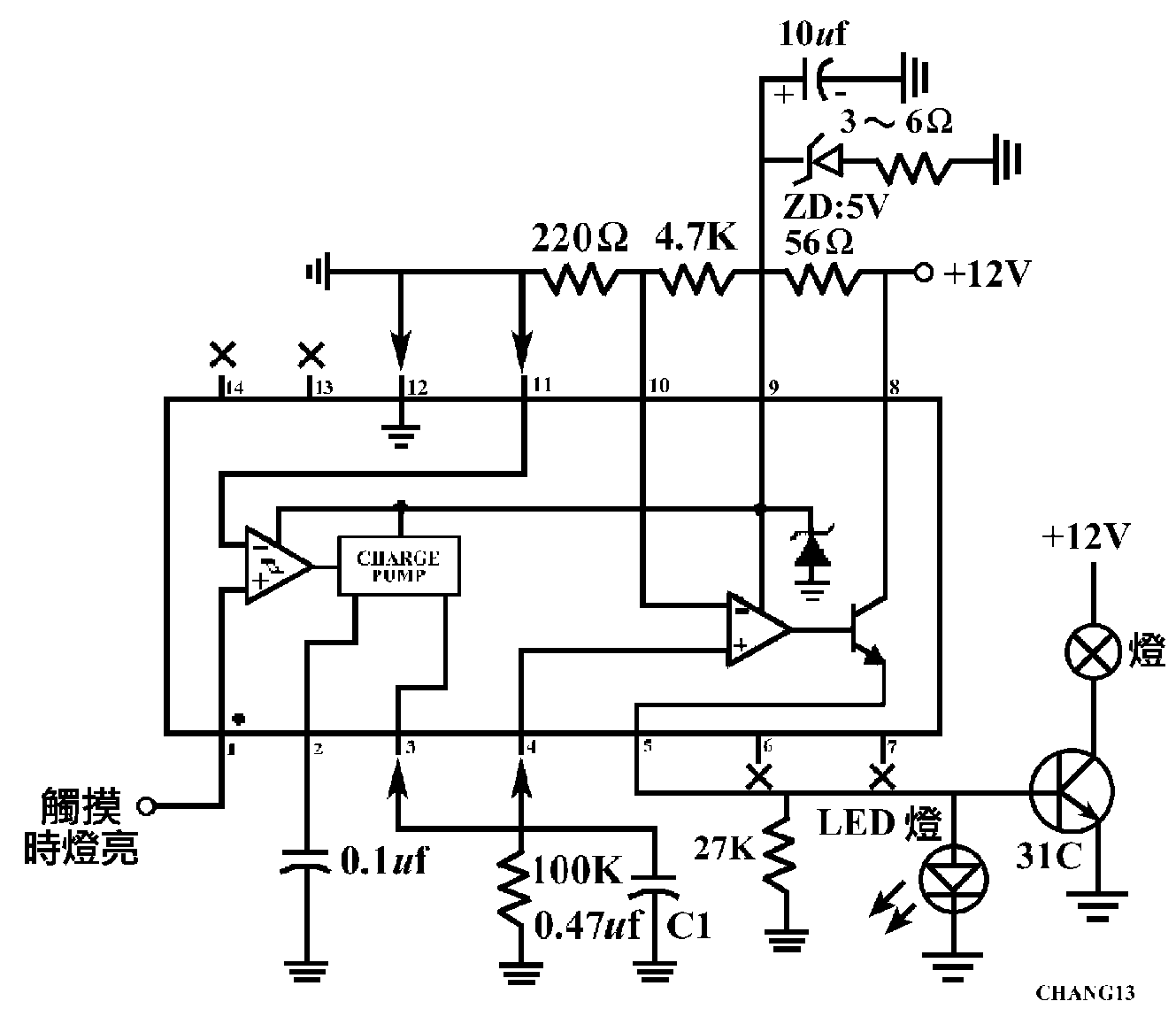 ※ 2. 如果將11#及C1不接,則平時亮,觸摸時熄。