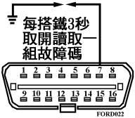 (2) 當重覆閃第一組故障碼時,即開始踩剎車踏板10次,每次之間的間隔應