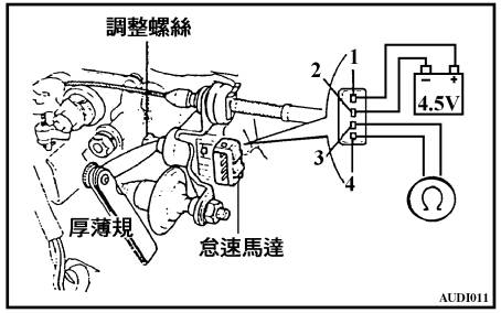 歐姆錶應指示 在∞(不通)位置,若不是上述狀況,則調整怠速馬達